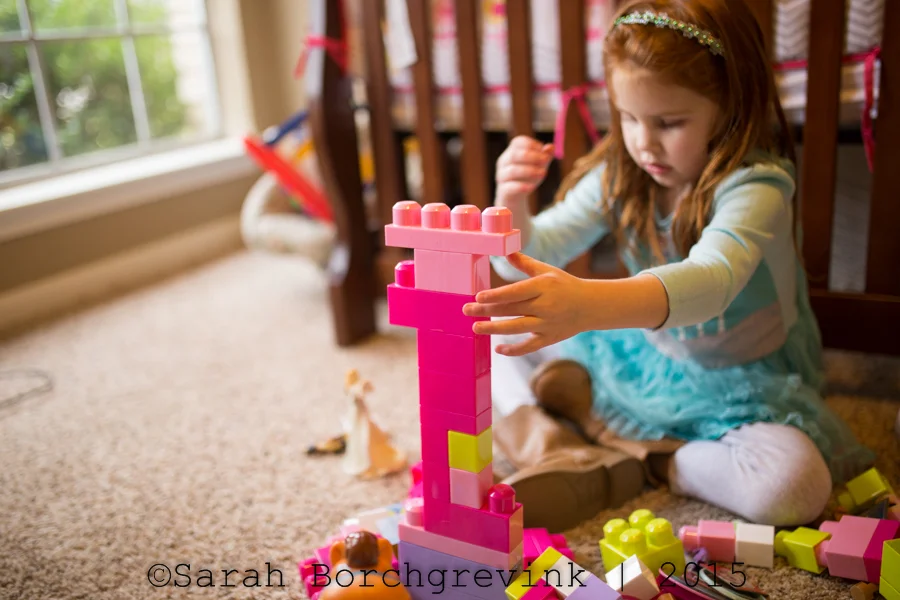 However, as much as I love the nice weather, it can quickly turn sour. :-( This part of the week we ended up just playing inside. Perhaps my favorite element of this image is seeing Emma patiently explaining the toys to Lucy. They are four years apart, though Emma is ever so purposeful in her patience.