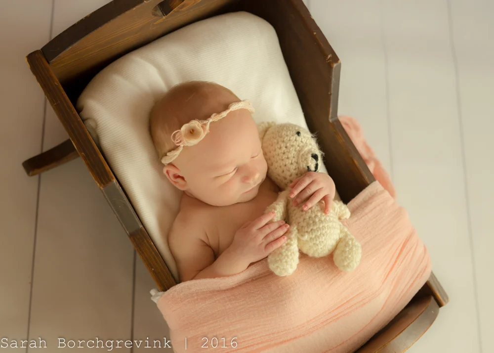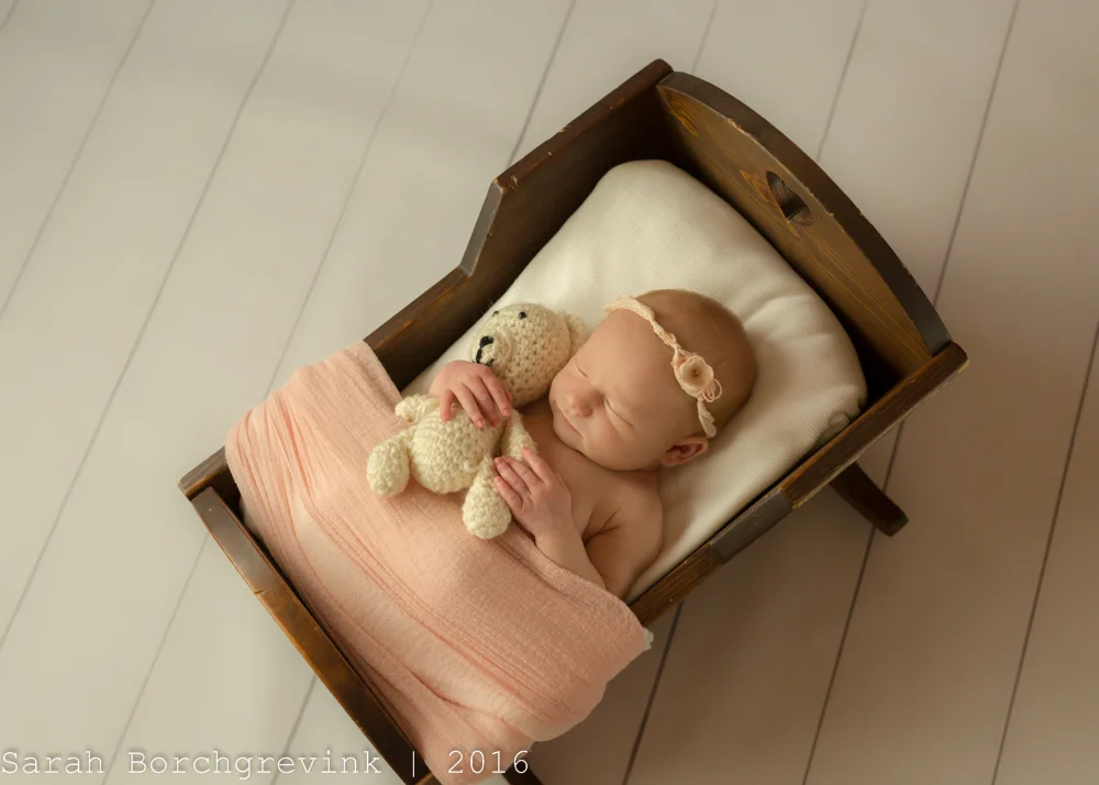 After this set up, I moved Baby to an adorable vintage, rustic cradle! When I saw this in the antique store I knew it was made for me. For your newborn sessions, I like them to reflect a timeless and classic vibe. 30 years from now when you walk your sweet daughter down the aisle, I want you to remember these photos. They're incredibly special and require a great deal of expertise in the posing, styling and handling of the baby. This is why your sessions are typically 3-4 hours long.