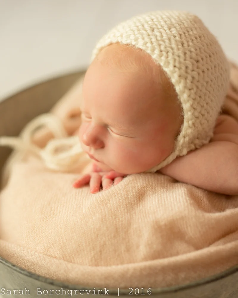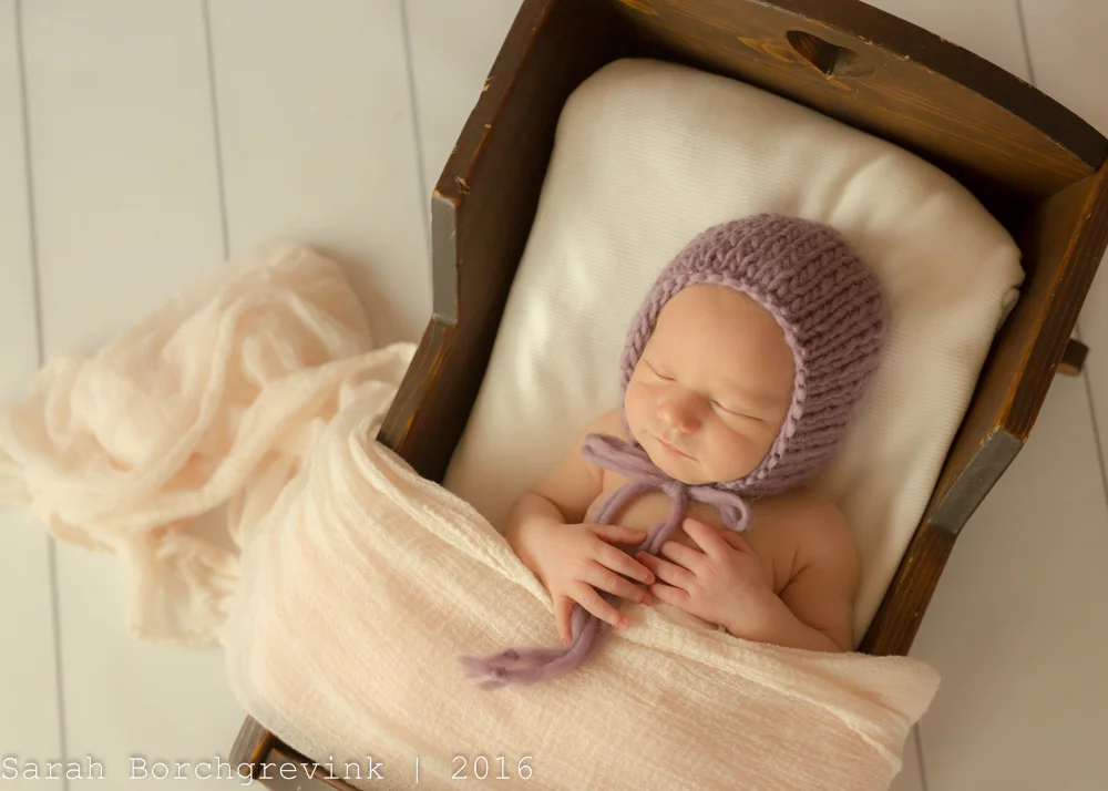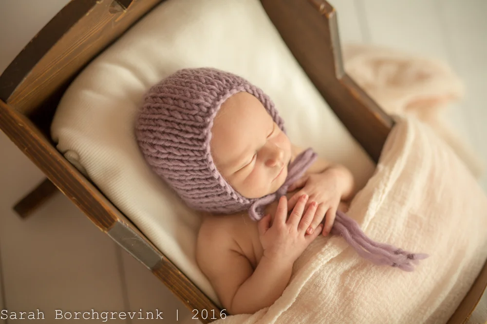 This is my favorite bonnet! I bring this to every single newborn portraiture session. It seems to fit most babies pretty well and is both gender appropriate and works well with most color combinations. However, should you dislike bonnets have no fear! I have tons of other options to select from and am excited to show off your babies chubby cheeks and perfect features by framing your babies face with beautiful props.