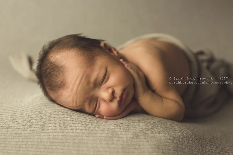 One aspect of custom posed newborn photography I adore are all the little faces you baby makes. Sometimes they're soulful. Maybe pouty. Even sweet little grins or thoughtful appearances. One cannot help but wonder if they're dreaming.