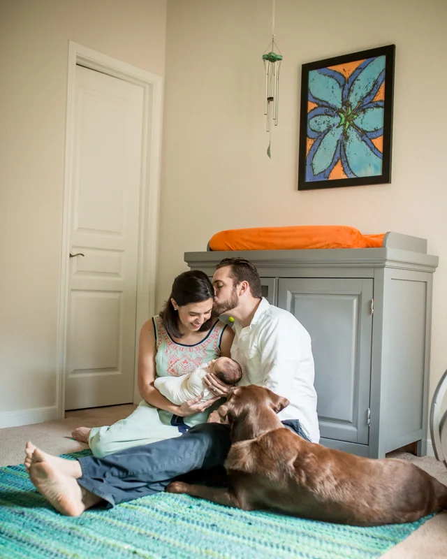 This is my favorite set up from the entire session. Fur babies are often like children (in fact, they're family) and I always encourage Mom and Dad to include them if they're comfortable doing so. This sweet pup is beautiful and the light looks amazing upon his coat. During the session, he would not leave my side as I photographed his little brother. He has a gentle spirit and calm demeanor.