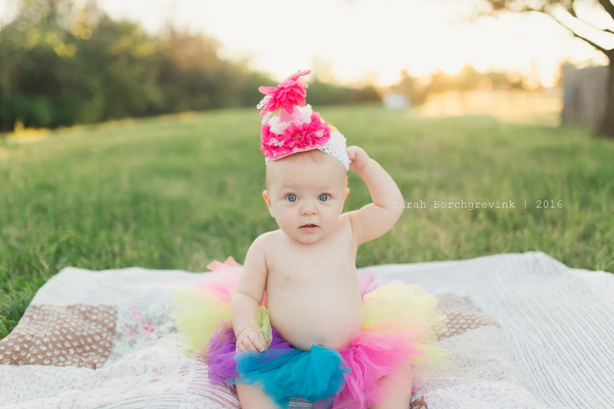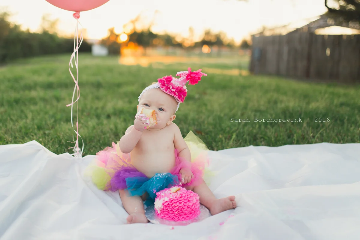 There's nothing more sweet than turning the big one! This is a beautiful milestone because it's a time to celebrate all the lovely things that have happened over the last year from the birth of baby, bringing him or her home from the hospital, seeing them grow and change daily, ect. This in mind, what's more fun than a sunset one year old photography session complete with a festive cake, pink tutu and even an adorable bow?