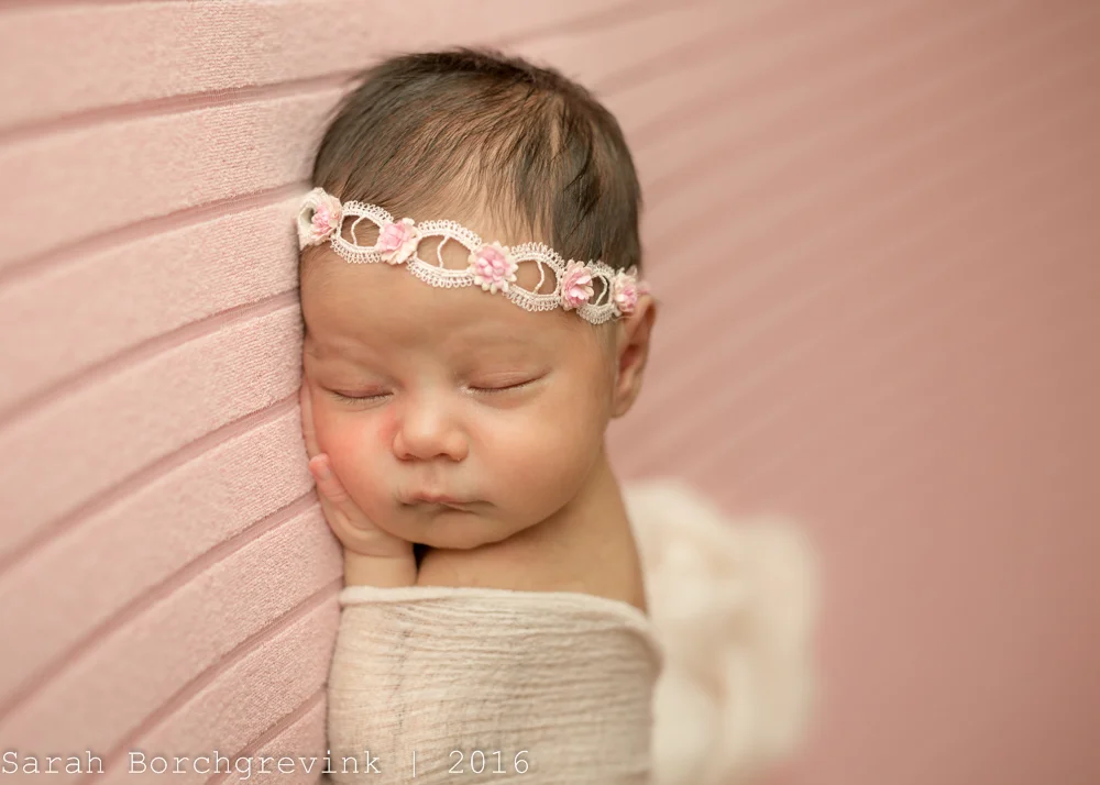 I like to use a variety of wraps and tieback pieces for fresh, new babies. They add lovely texture to the images and also adorn baby beautifully.