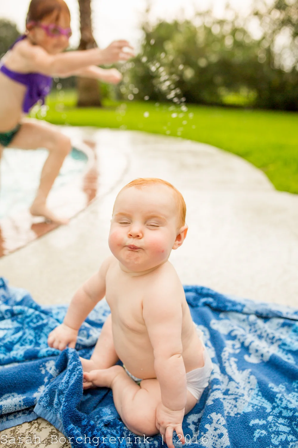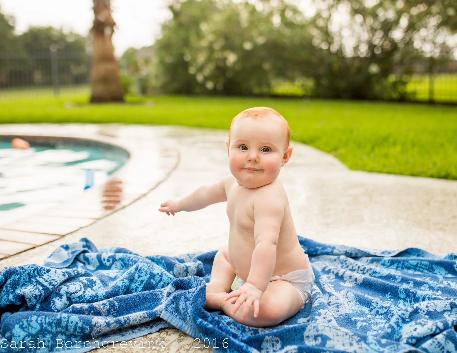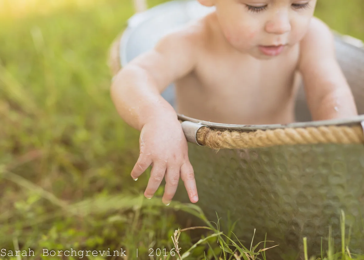 After the cake smash portion, we cleaned Ellie up and let her play in her diaper. This is a wonderful way to end the session - to create an organic atmosphere in which the baby simply enjoys being outside and we can show all the cuteness of a newly turned one year old such as their little chunky arms, locks of hair, or chubby feet.